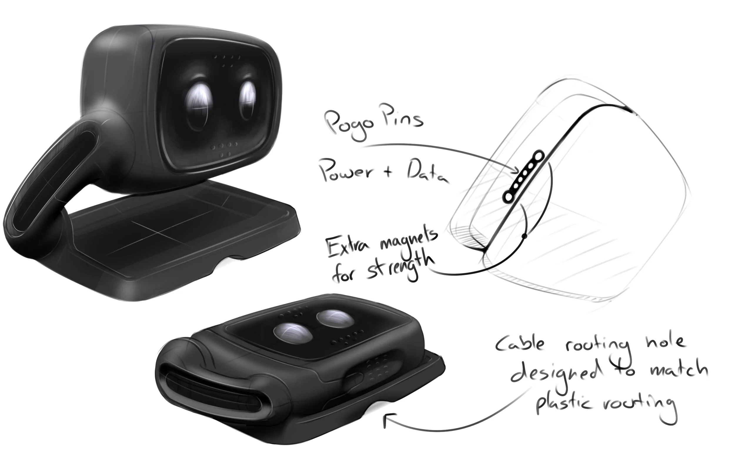 The main connection method of the camera to the dock, this would be moving to a mechanical connection, as the unit would be used in cars.