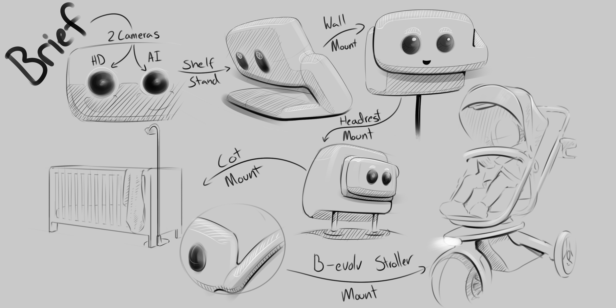 Some form of magnetic mount, whilst also making sure the camera could be mounted accurately and hold in place with repeated vibrations when fitted to strollers.